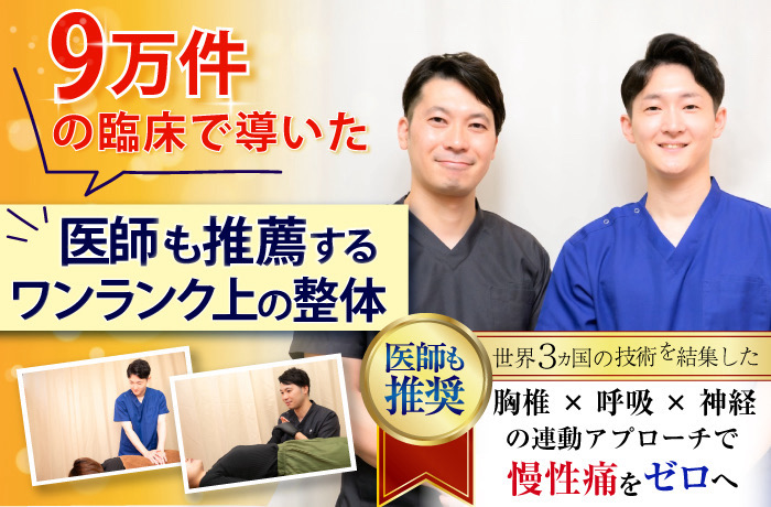“なぜ治らないのか”を明確にし、「呼吸の浅さ」や「胸椎の硬さ」といった本質的原因にアプローチ。最後にたどり着く治療院として選ばれています。